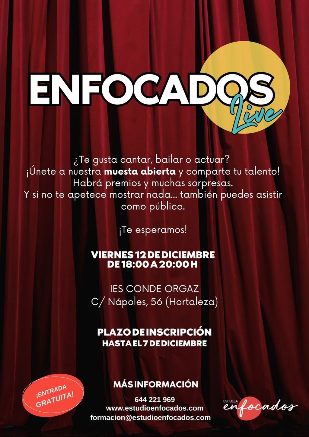 Muestra de nuestros alumnos de artes escénicas y musicales. Organizado por la empresa Enfocados