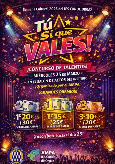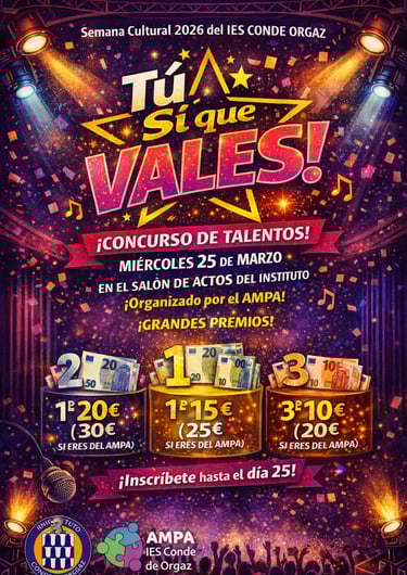 El IES Conde de Orgaz se prepara para vivir una de sus semanas más intensas y creativas del año. Organizada por el AMPA, la Semana Cultural 2026 promete convertir el centro en un hervidero de actividades donde los alumnos podrán demostrar que su talento va mucho más allá de los libros de texto.